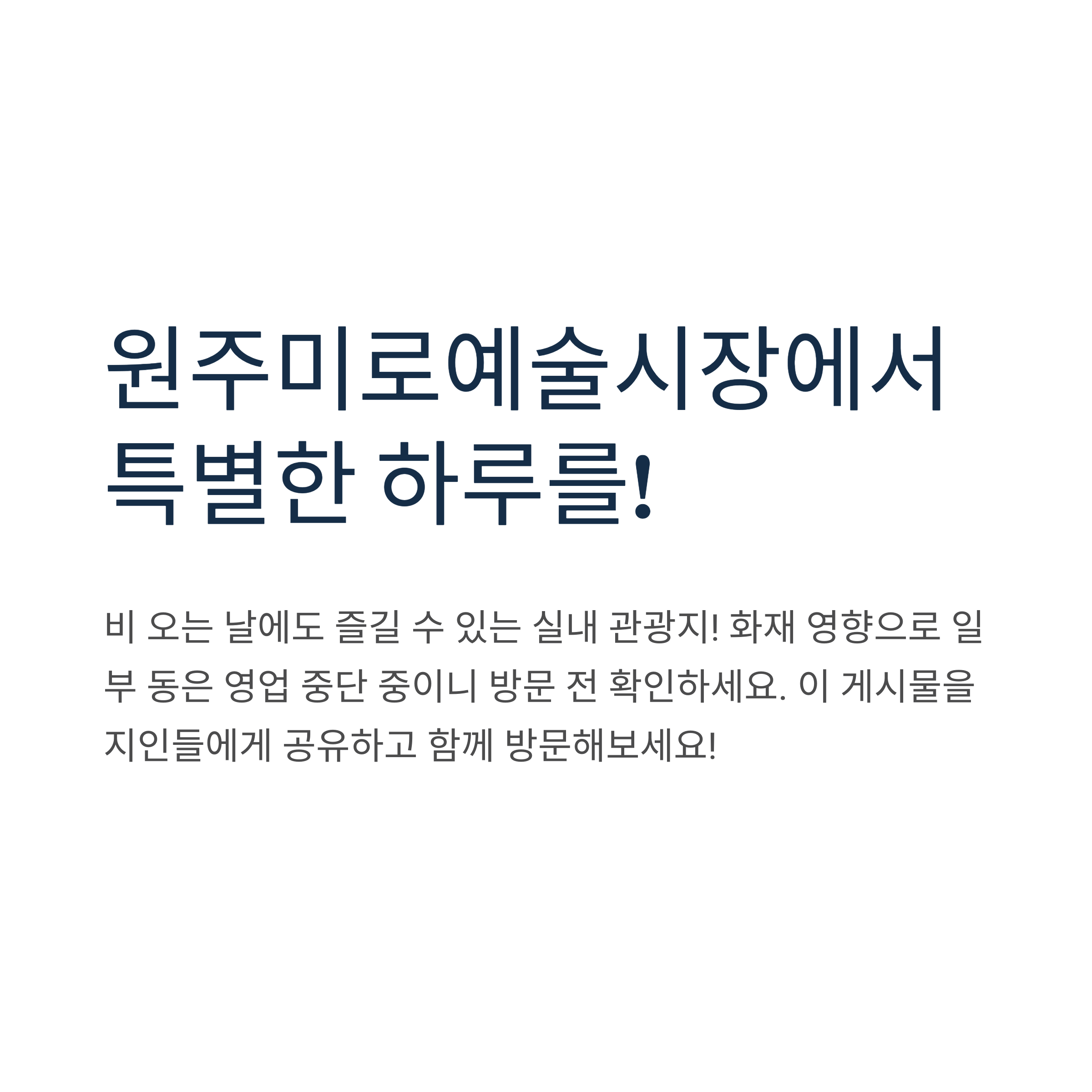 원주미로예술시장을 방문해 보셨나요? 가장 기억에 남는 장소나 추천하고 싶은 가게가 있다면 댓글로 공유해 주세요! 여러분의 여행 경험을 함께 나누고 싶어요.