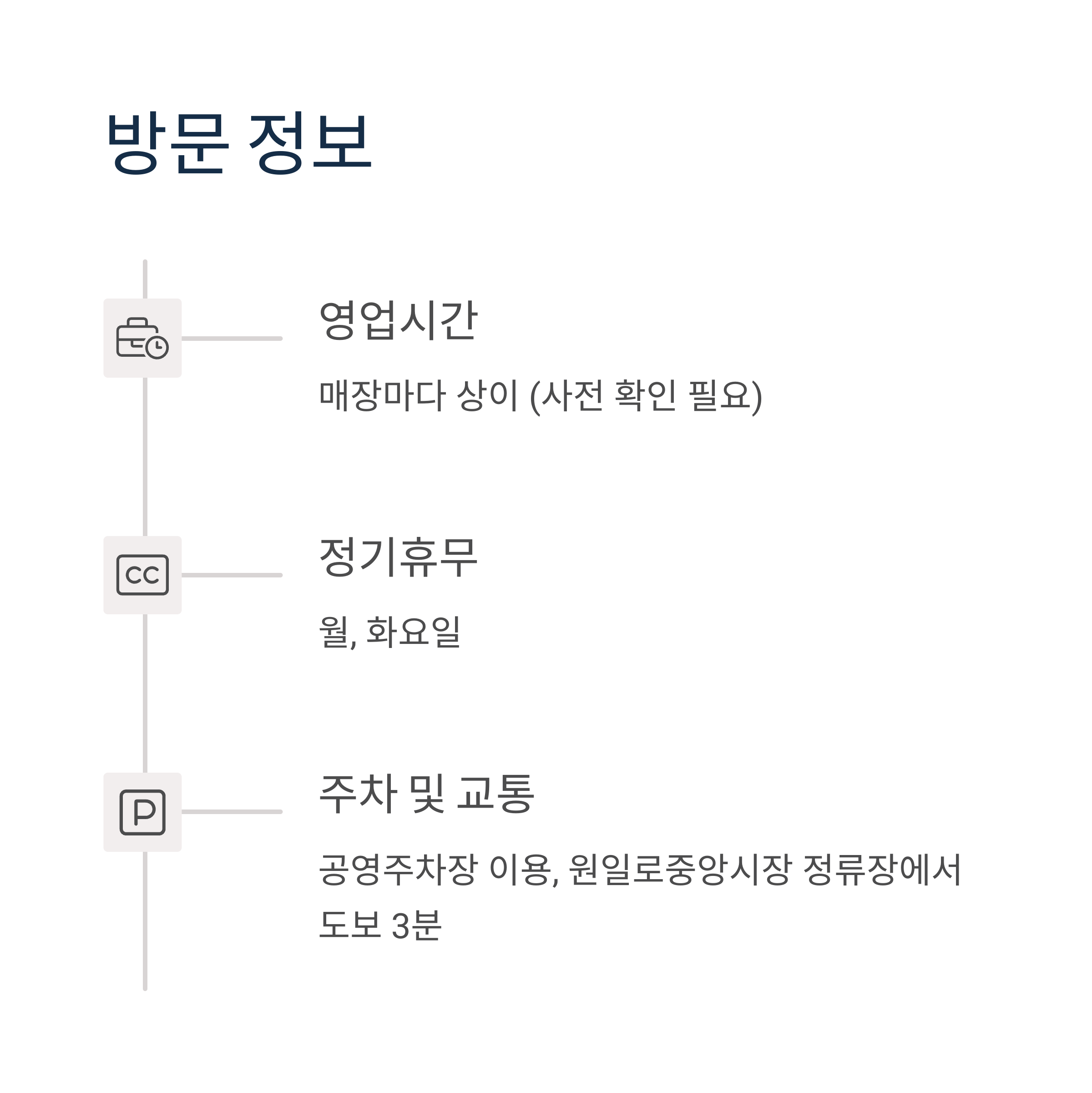 | 운영 시간 | 매장별 상이, 월·화요일 정기휴무 |