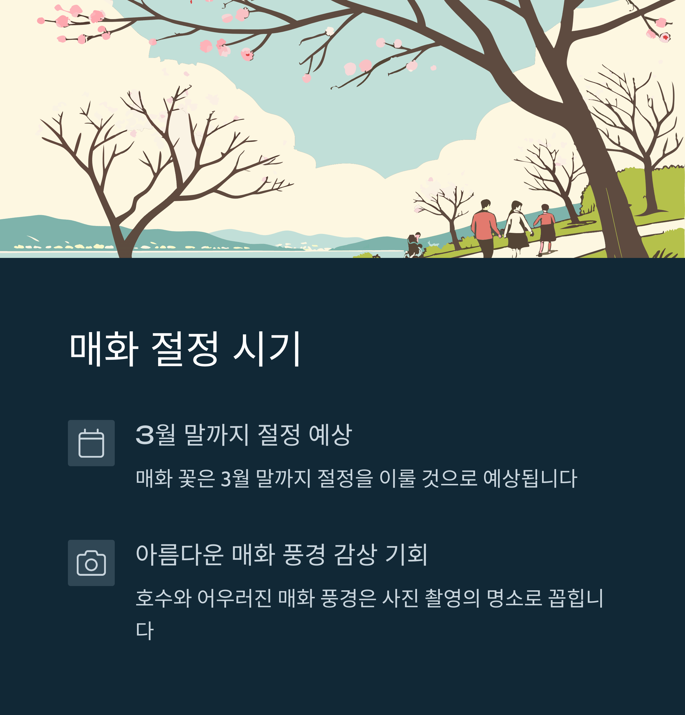 | 현재 개화 상태 | 매화 만개, 3월 말까지 절정 예상 |